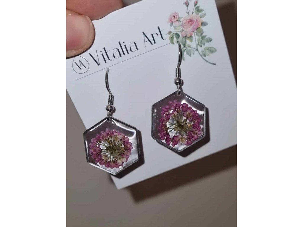 Ručně vyrobené náušnice ze sušených květin
