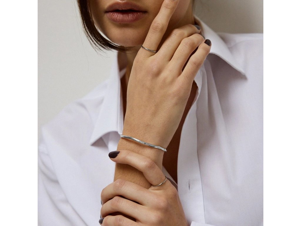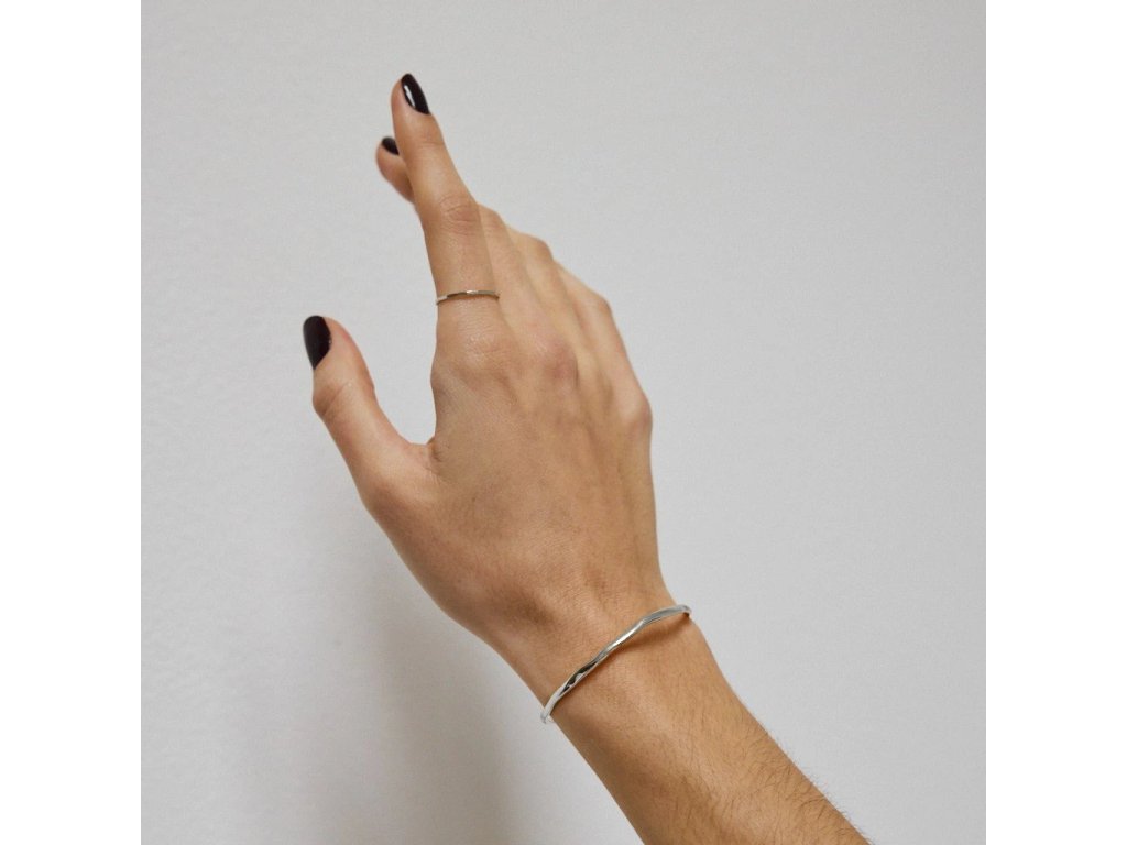 Nepravidelný, detailně propracovaný nasazovací pevný náramek BANGLE. Je minimalistický, elegantní a velmi nadčasový s tím se pojí i jeho všestrannost.Precizně vyrobeno v ČR – s důrazem na detail, kvalitu a lokální řemeslo. Dokonale podtrhne váš outfit na nejedné události. Vynosíte jej ale i běžně. Vaše zápěstí díky němu bude nepřehlédnutelné!