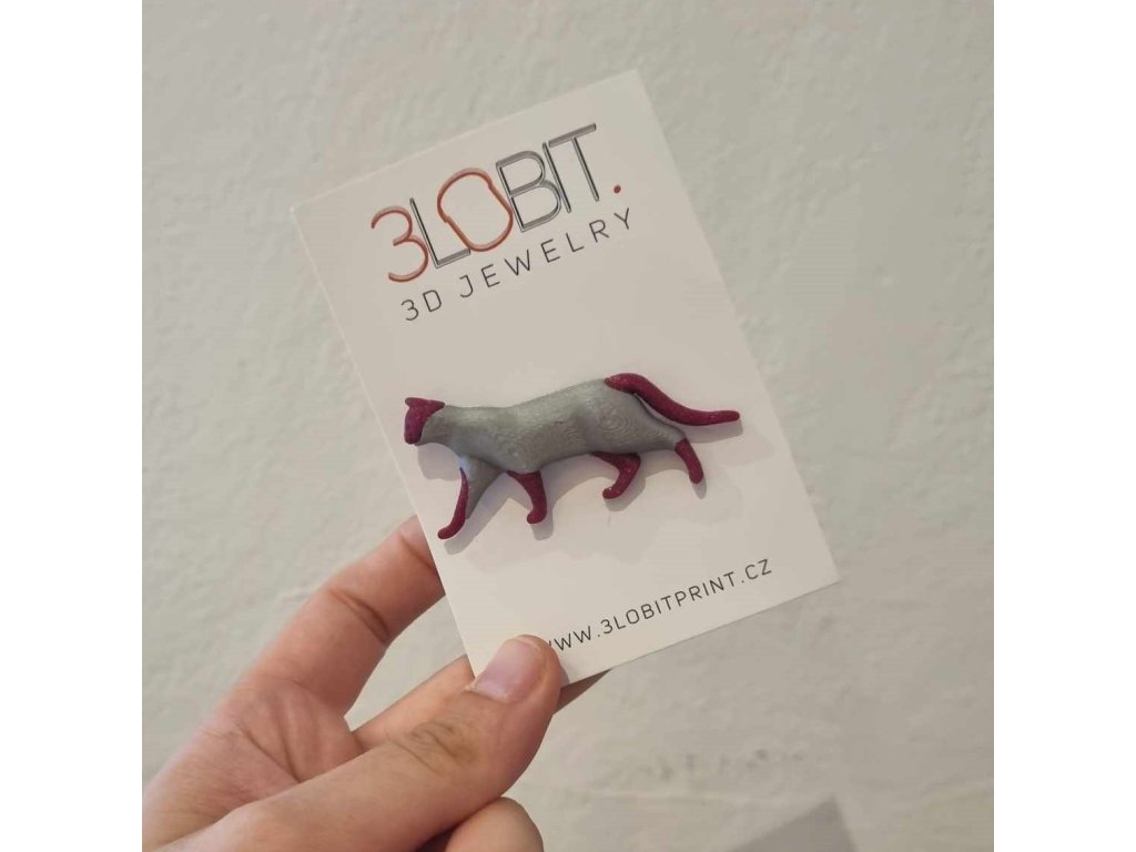 Originální brož liška z 3D tiskárny. Materiál plast PLA.
