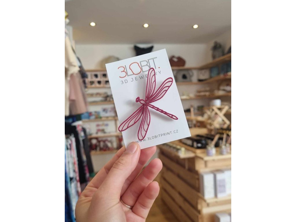 Originální brož vážka z 3D tiskárny. Materiál plast PLA.