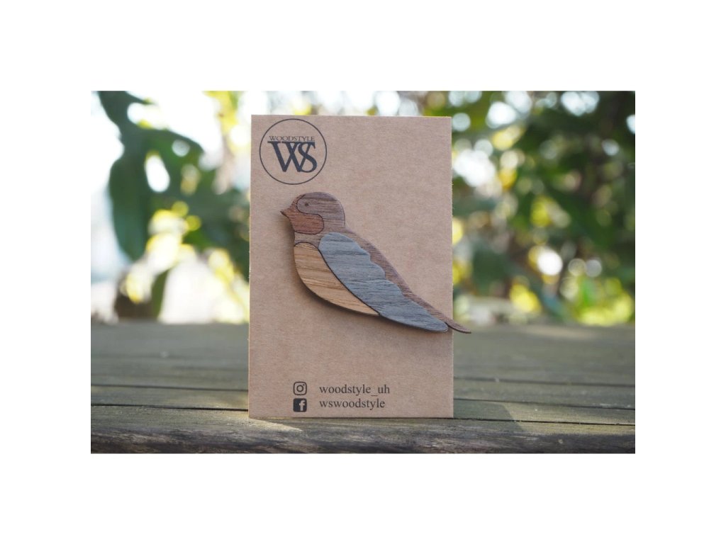 Brož je vyrobená slepením několika kvalitních dýh na sebe a tím je docílena barevnost a pevnost brože.