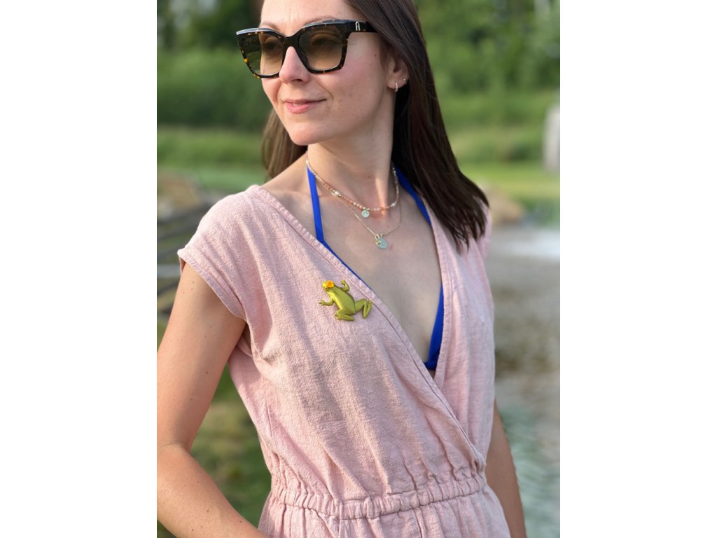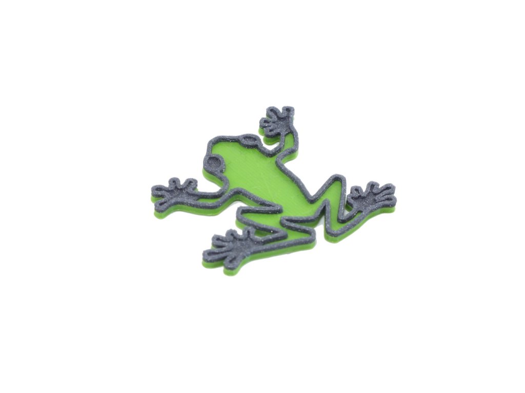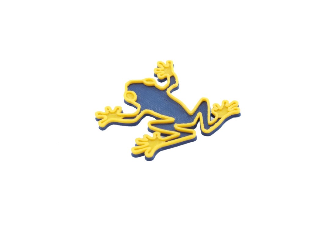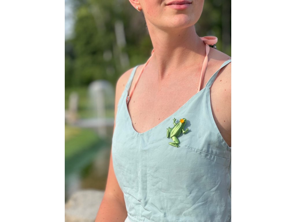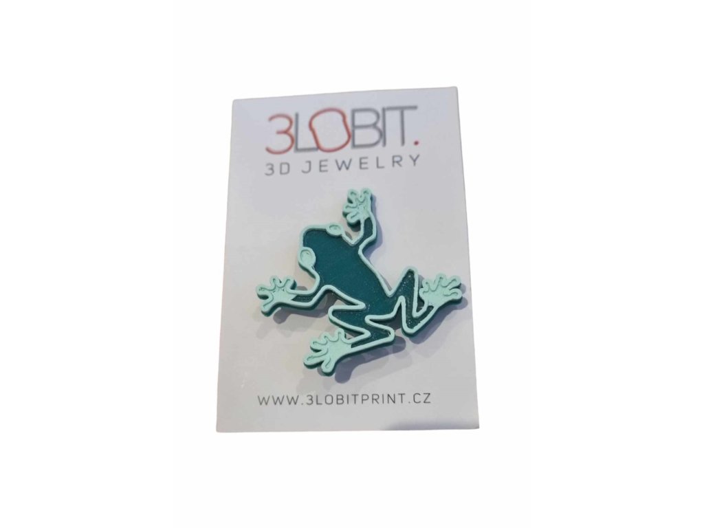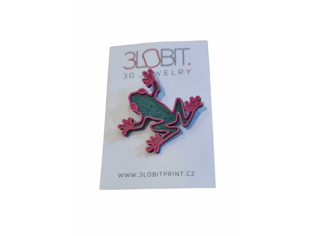 Originální brož žába z 3D tiskárny. Materiál plast PLA.