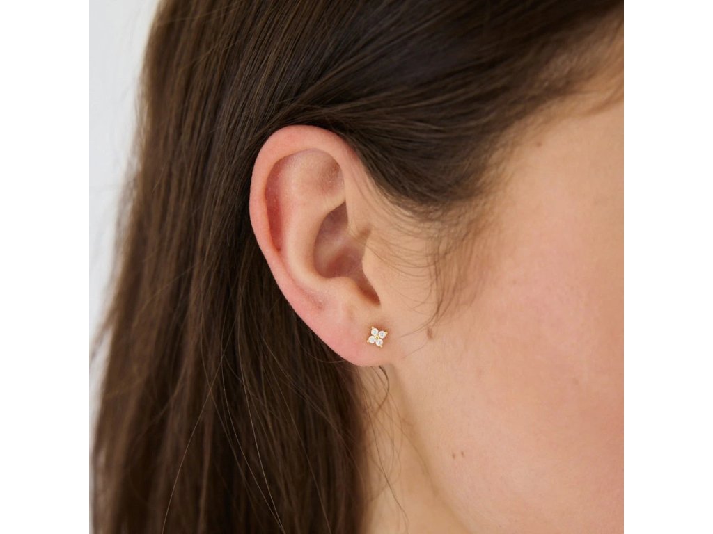 Minimalistické peckové náušnice ve tvaru čtverce se čtyřmi mini třpytivými zirkony. Tyto roztomilé pozlacené malé náušničky krásně ozdobí vaše ucho a vy už nemusíte mít starost, čím doplnit váš každodenní outfit. Věřte, že tyhle náušnice budou tou správnou volbou.