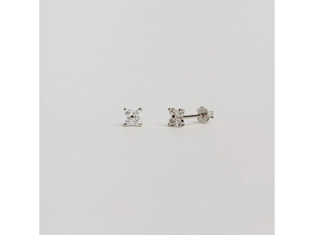 Minimalistické peckové náušnice ve tvaru čtverce se čtyřmi mini třpytivými zirkony. Tyto roztomilé stříbrné malé náušničky krásně ozdobí vaše ucho a vy už nemusíte mít starost, čím doplnit váš každodenní outfit. Věřte, že tyhle náušnice budou tou správnou volbou.