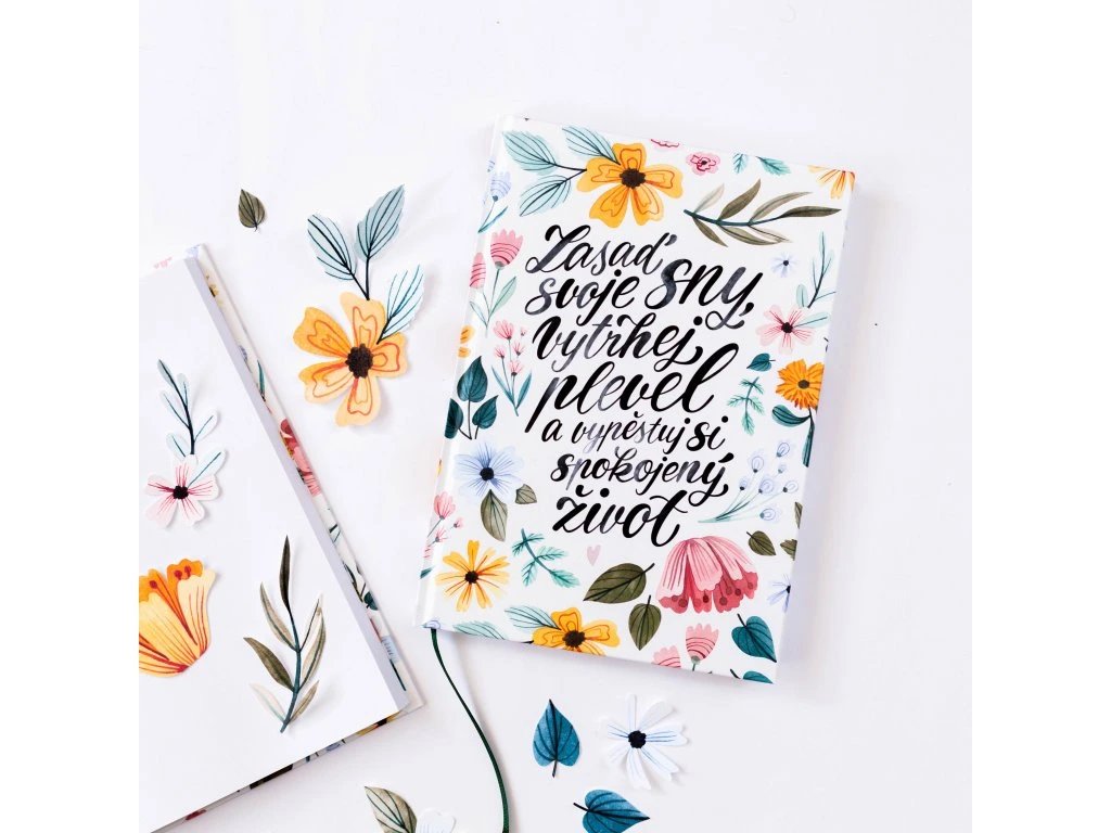 Popsat a pokreslit můžete 150 volných stránek, které jsou vyrobeny z recyklovaného papíru. Uvnitř najdete textilní záložku, díky které se v deníku neztratíte.