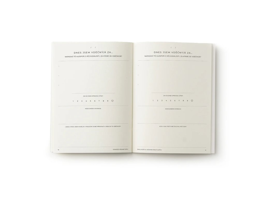- Nedatovaný. Začni, kdy chceš. Žádný stres z prázdných stránek, když nějaký den vynecháš.