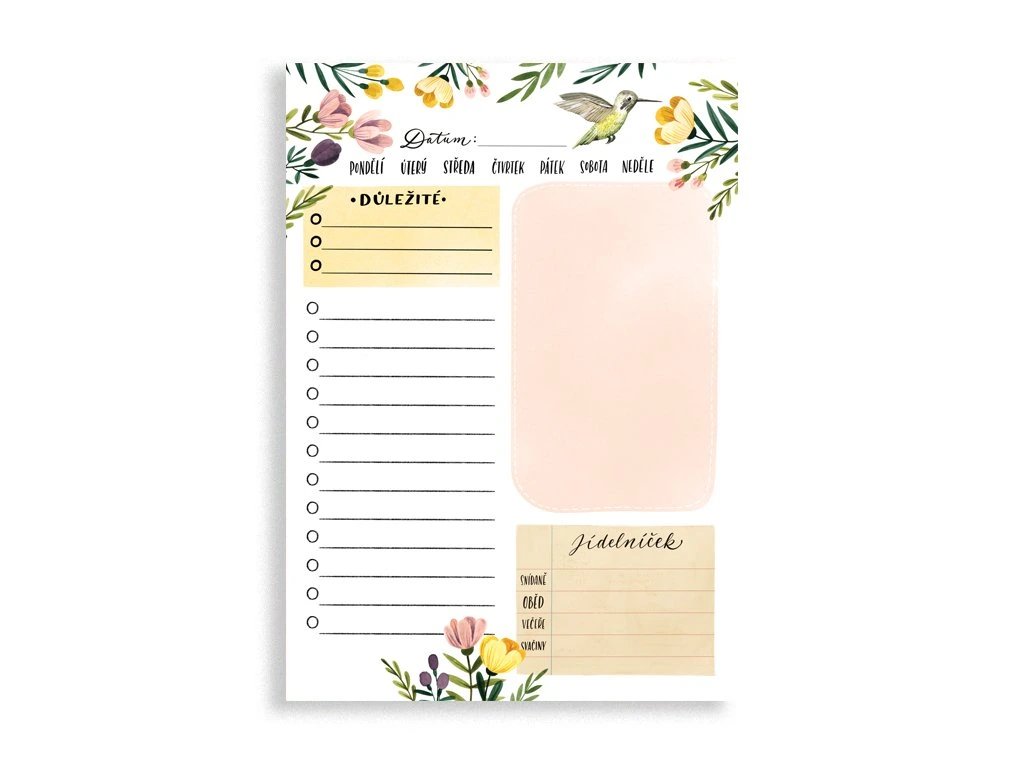 Denní plánovač, perfektní pomocník pro organizaci vašich dnů a týdnů. S tímto plánovačem můžete snadno zakroužkovat den v týdnu a začít plánovat vaše úkoly, setkání, nebo jakékoliv další důležité poznámky, které potřebujete uchovat. Jeho velikost A5 a 52 listů nabízejí dostatečný prostor pro vaše plány a zároveň se vejde do tašky či batohu, takže ho můžete mít stále při sobě.