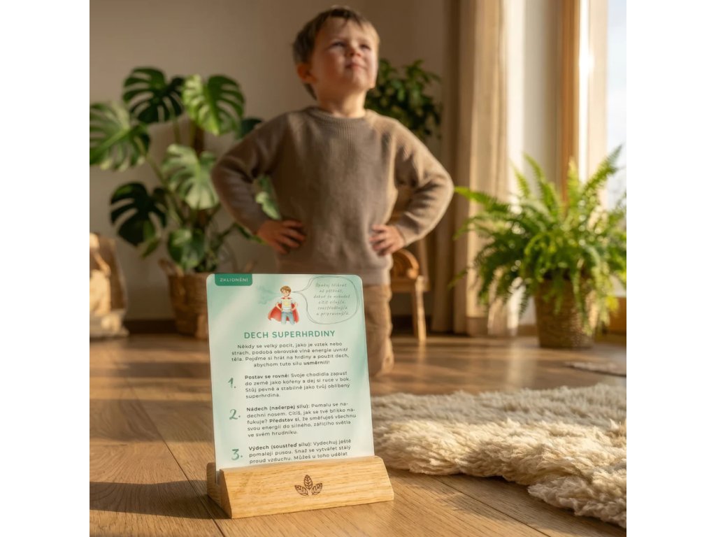 - Nástroje pro práci s emocemi: Součástí je pět vedených všímavých her (např. Dech superhrdiny), které pomocí dechu a pohybu pomáhají zvládat vztek, strach i stres.