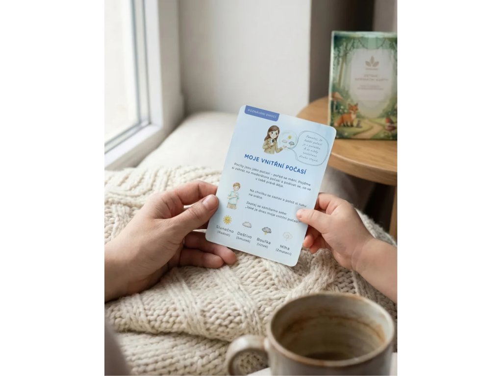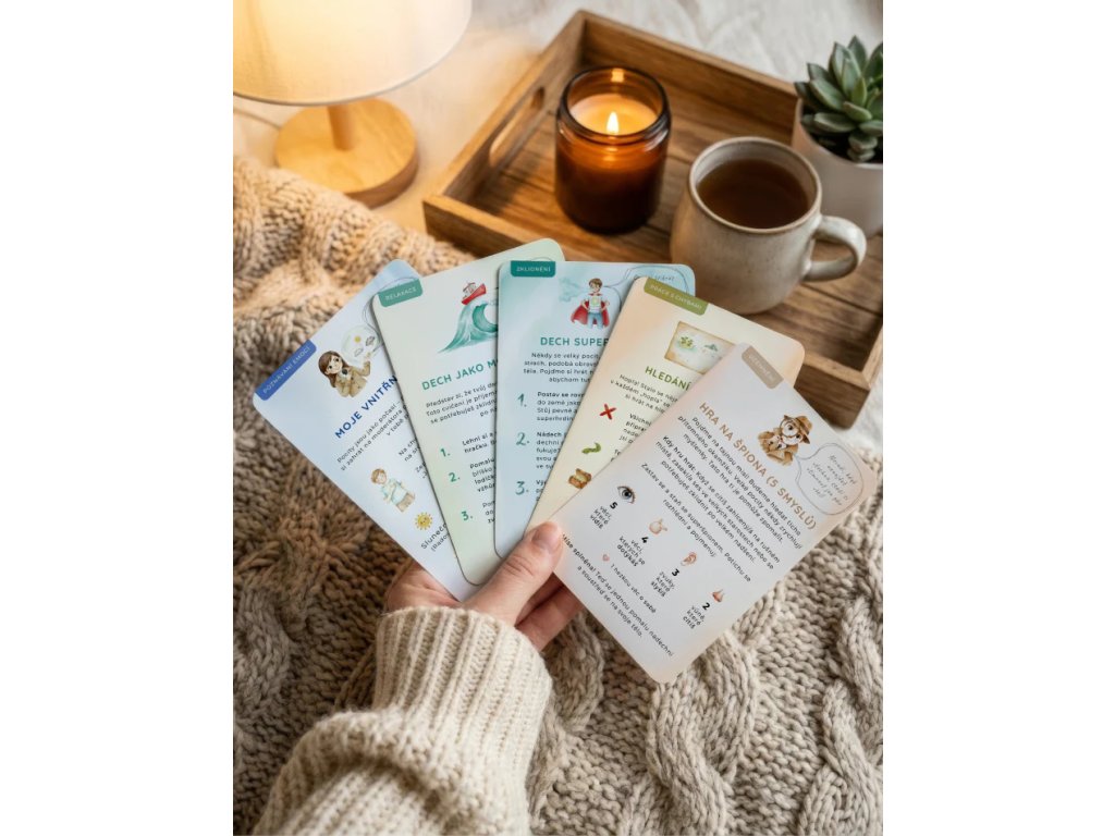 - Péče o vnitřní hlas: 40 ilustrovaných karet, které učí děti přijímat pozitivní myšlenky jako „Jsem dost dobrý/á“ nebo „Umím si říct o pomoc“.