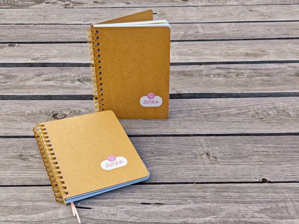 - v diáři najdete i dvě praktické záložky z oboustranné atlasové stuhy, díky kterým si snadno založíte, co je zrovna potřeba