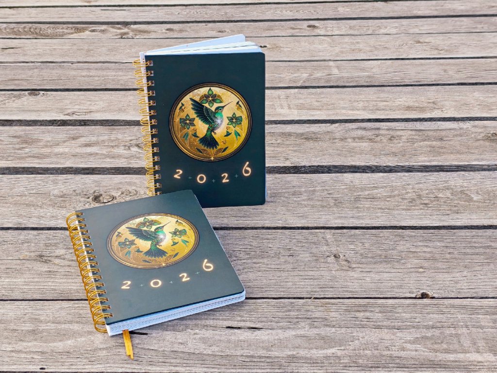 - v diáři najdete i dvě praktické záložky z oboustranné atlasové stuhy, díky kterým si snadno založíte, co je zrovna potřeba