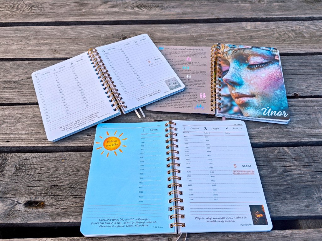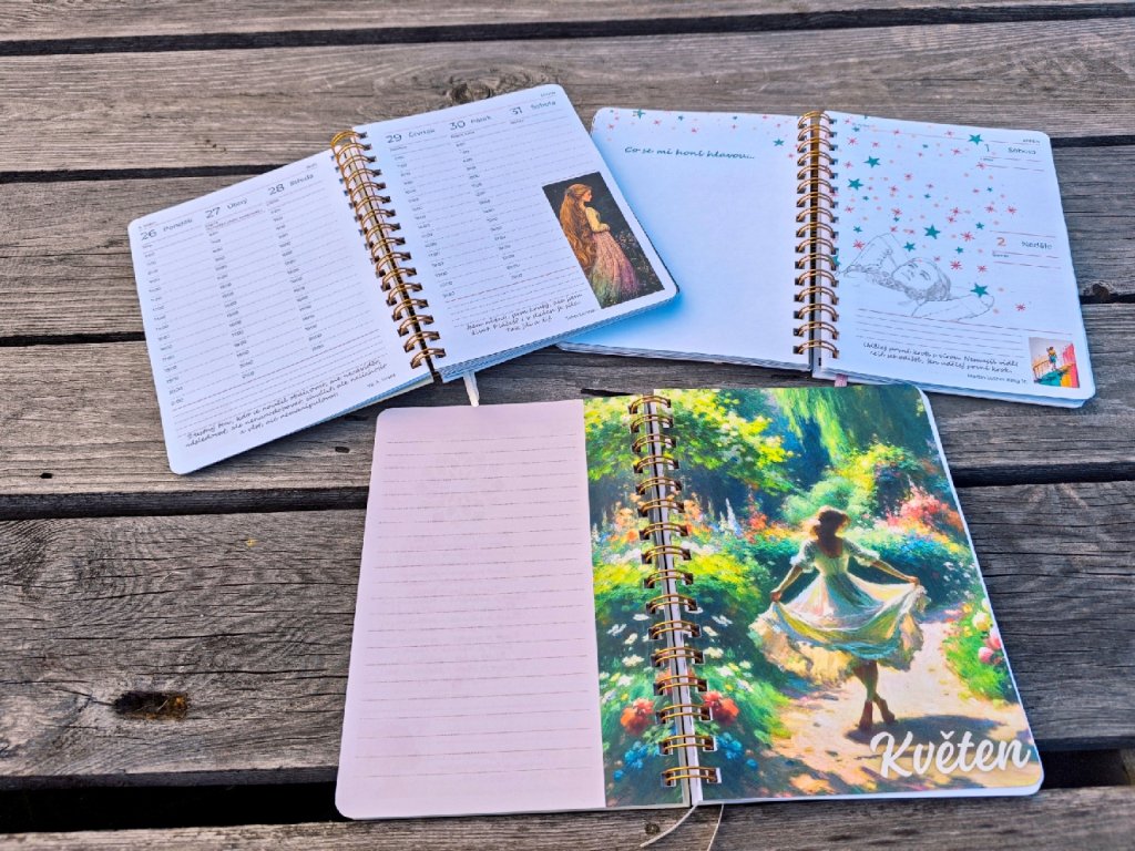 - formát diáře je A5 (15,3 cm x 21,6 cm + kroužky)