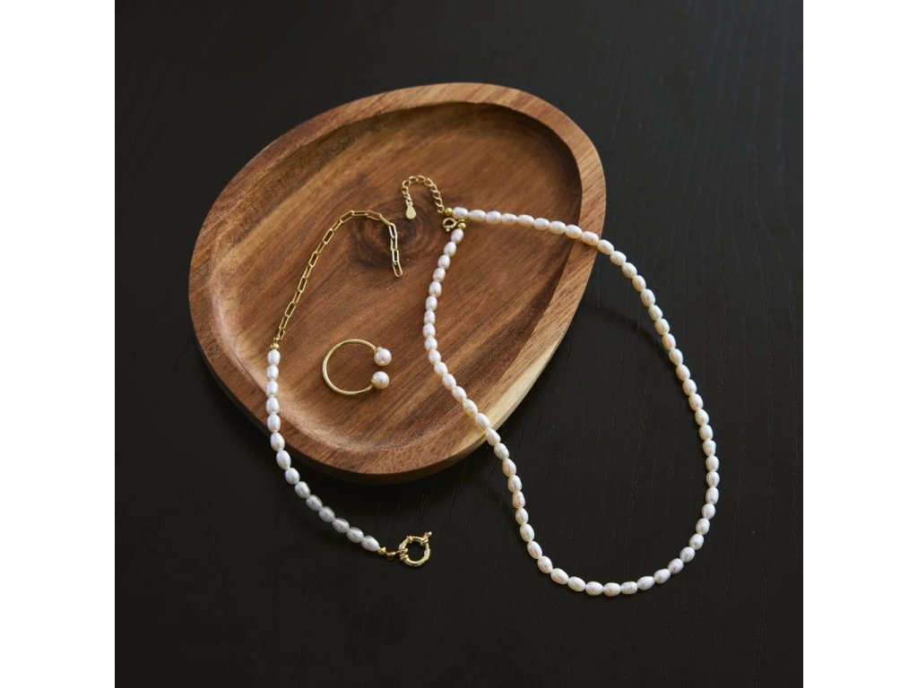 Má nedokončenou obruč, z obou stran jsou ozdobou říční perly, které značí pořádnou dávku luxusu. Zaměřte se na detaily provedení. Tento nevídaný prstýnek vás nadchne.