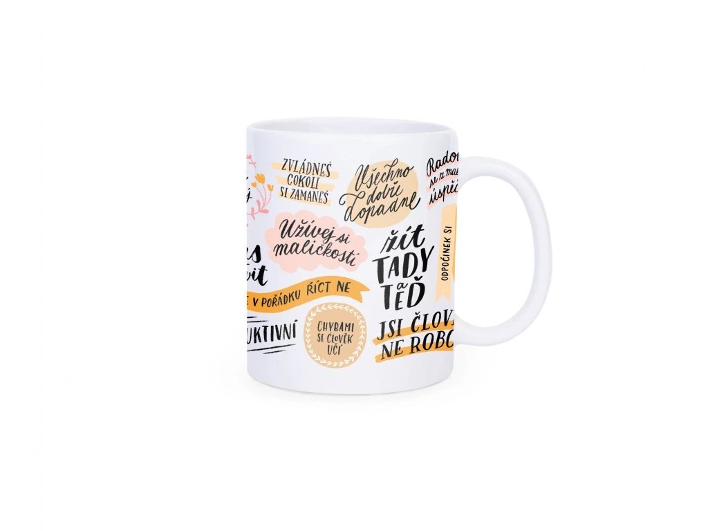Náš další a celkem nový bestseller mezi keramickými hrnky – "Užívej si maličkostí", který je dokonalým připomenutím, že krása a štěstí se skrývají v každodenních momentech. Tento barevný keramický hrnek je zdobený ručně kreslenými motivačními motty ve svěžích pastelových odstínech, které vás každý den povzbudí k pozitivnímu náladě a užívání si života ve všech jeho podobách