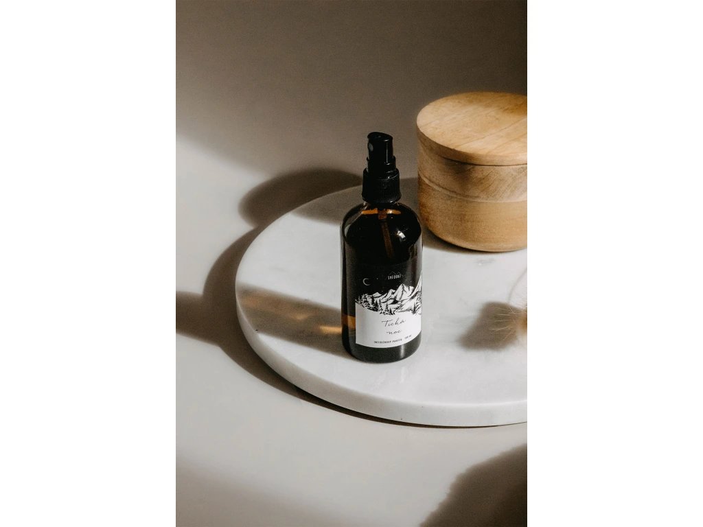 Interiérový parfém Tichá noc je více než jen vůně. Je to způsob, jak přinést kousek klidu a pohody do vašeho domova. Můžete jej použít nejen ve svém obývacím pokoji, ložnici nebo koupelně, ale také na textiliích.