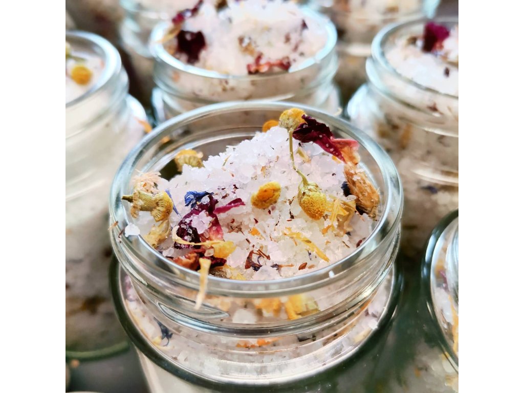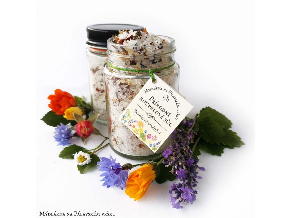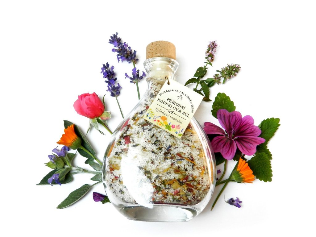 Sea Salt (mořská sůl), Magnesium sulfate (epsomská sůl), Litsea Cubeba Fruit Oil (esenciální olej Litsea cubeba), Paeonia Officinalis Flower (květ pivoňky), Centaurea Cyanus Flower (květ chrpy), Bellis Perennis Flower (květ sedmikrásky), Rosa Centifolia Flower (květ růže), Lavandula Angustifolia Oil (esencilální olej Levandule), Lavandula Angustifolia Flower (květ levandule), Chamomilla Recutita Flower (květ heřmánku), Calendula Officinalis Flower (květ měsíčku lékařského), Melissa Officinalis Leaf/ stem (list a nať meduňky), Geraniol*, Linalool*, D-limonene*, (*z přírodních esenciálních olejů).