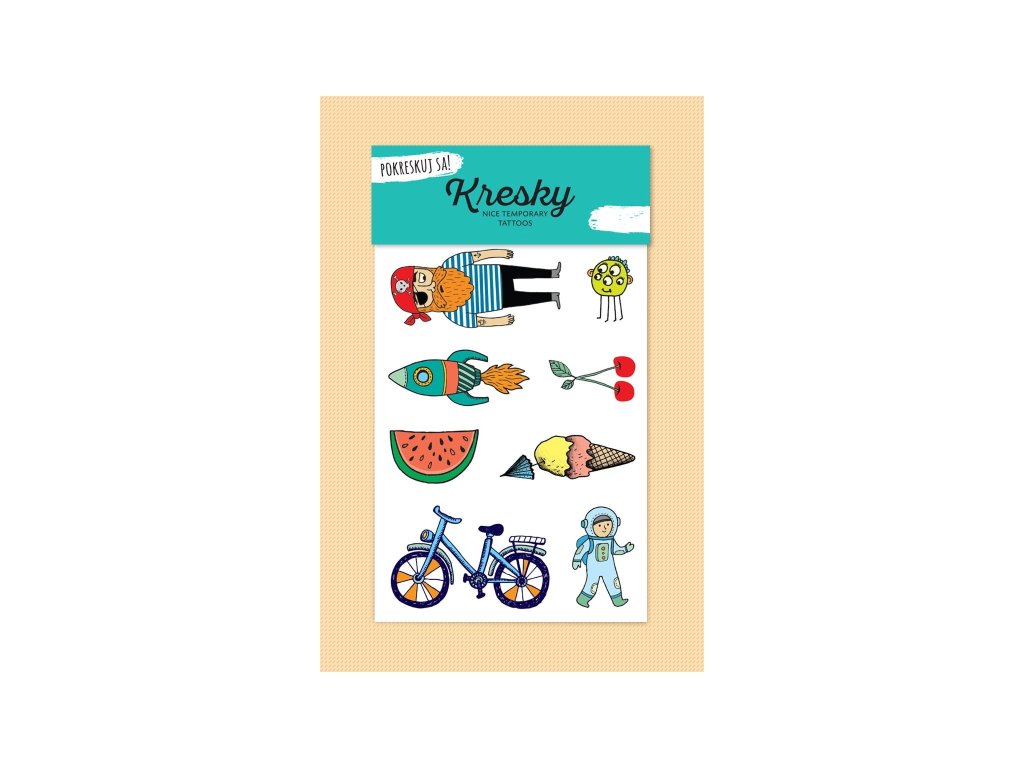 Kresky sjou dočasné, ale odolné tetovačky s veselými ilustracemi. Dětem přinášejí radost a dospělým zábavu.