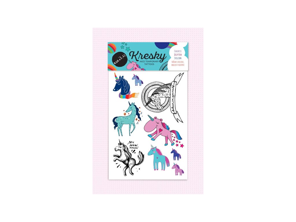 Bezpečnost: Dočasné tetovačky Kresky jsou vyrobené v souladu s evropskou směrnicou pro kosmetické výrobky a pravidelně dermatologicky testované.