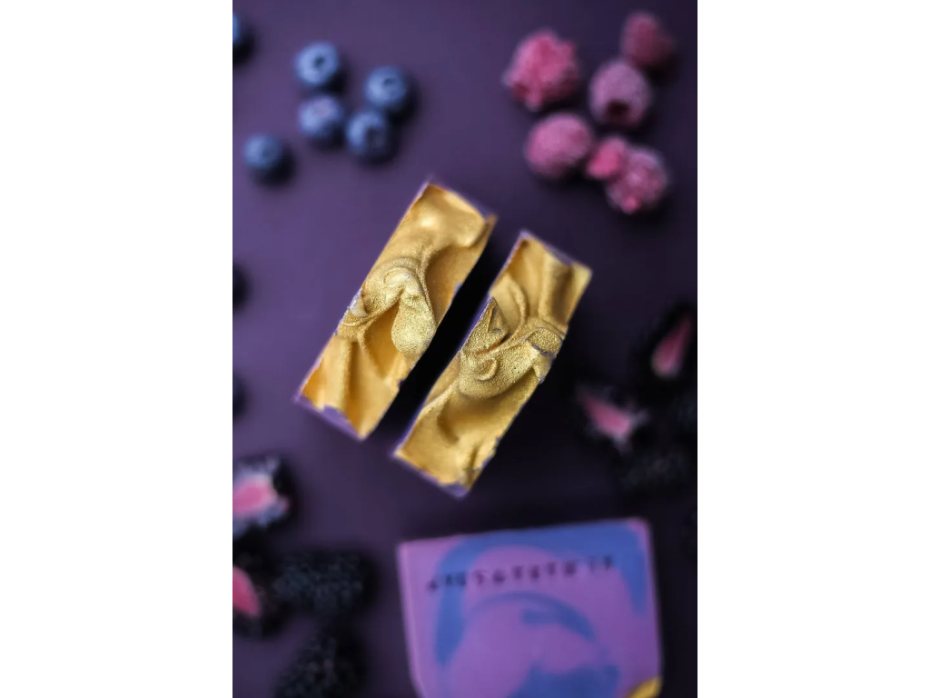 Výrazný design inspirovaný barvami lesního ovoce se zlatým zdobením dělá z mýdla Blackberry nepřehlédnutelný kousek v každé koupelně. Mýdlo obsahuje vysoký podíl rostlinných olejů, které jemně čistí a zanechávají pokožku hebkou, vyživenou a nevysušenou. Krásné barvy jsou dosaženy minerálními barvivy a oxidem zinečnatým.