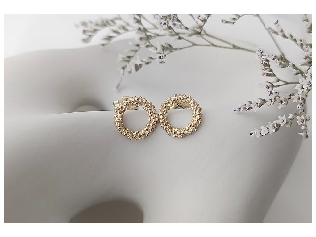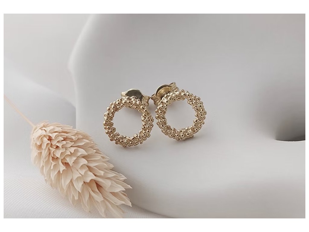 Bublinková struktura z drobných kuliček dodává náušnicím originální charakter.