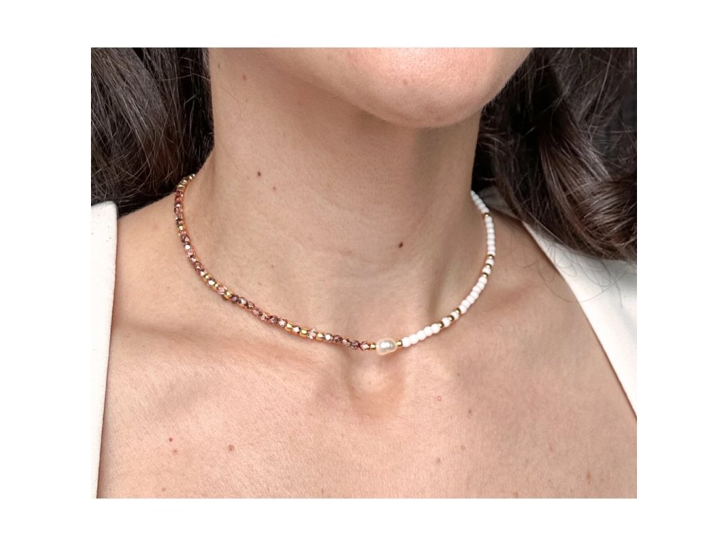 Vedle pravé říční perly o velikosti 7-8 mm najdete japonské korálky TOHO, které jsou známé svým perfektním tvarem a dlouhou výdrží.
