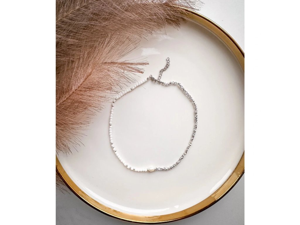 Náhrdeník je navlečen na pevném vlasci, zapnínání je z nerezové oceli.