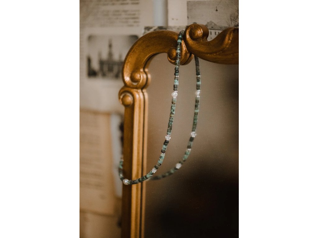 NÁHRDELNÍK - TYRKYS, ACHÁT, KŘIŠŤÁL, PERLY (AG925)
