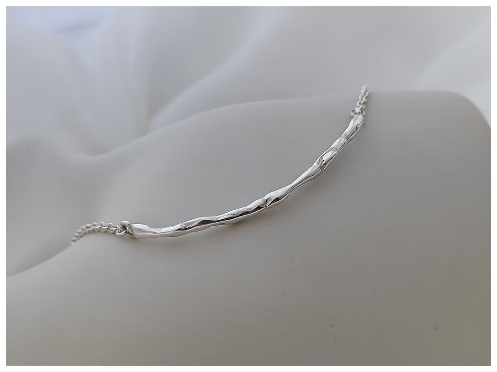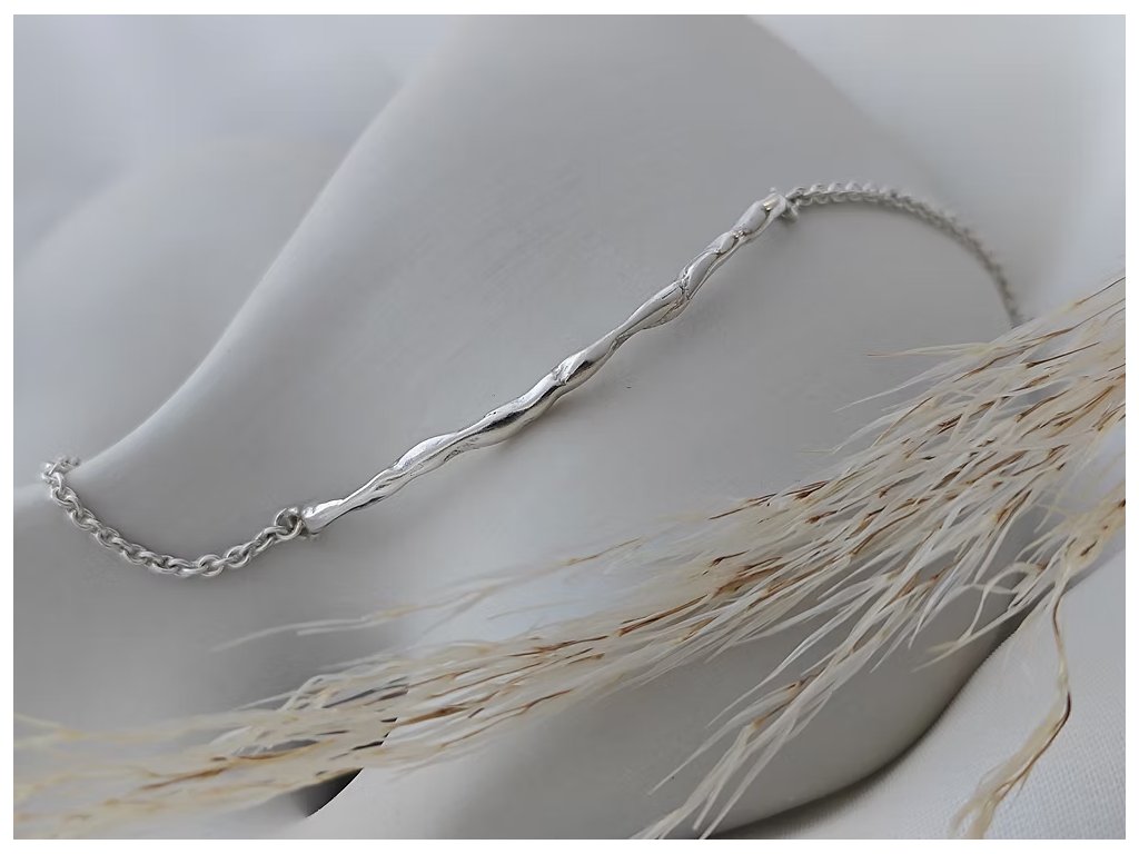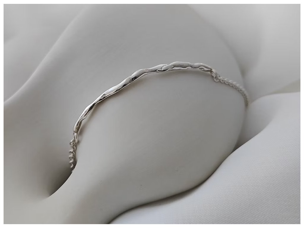 Polo pevný náramek s jemnou organickou strukturou perfektně kopíruje tvar zápěstí, což zajišťuje maximální pohodlí při každodenním nošení.