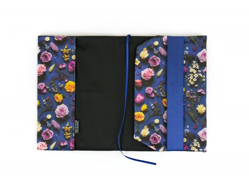 Knihobal má v levé části pevnou širokou kapsu, do které se zasune přední obálka vaší knihy. Vpravo se obal přehne kolem zadní obálky knihy a zafixuje se pomocí gumy tak, aby držela na místě, to znamená, že můžete změnit délku obalu v závislosti na tloušťce vaší knihy.