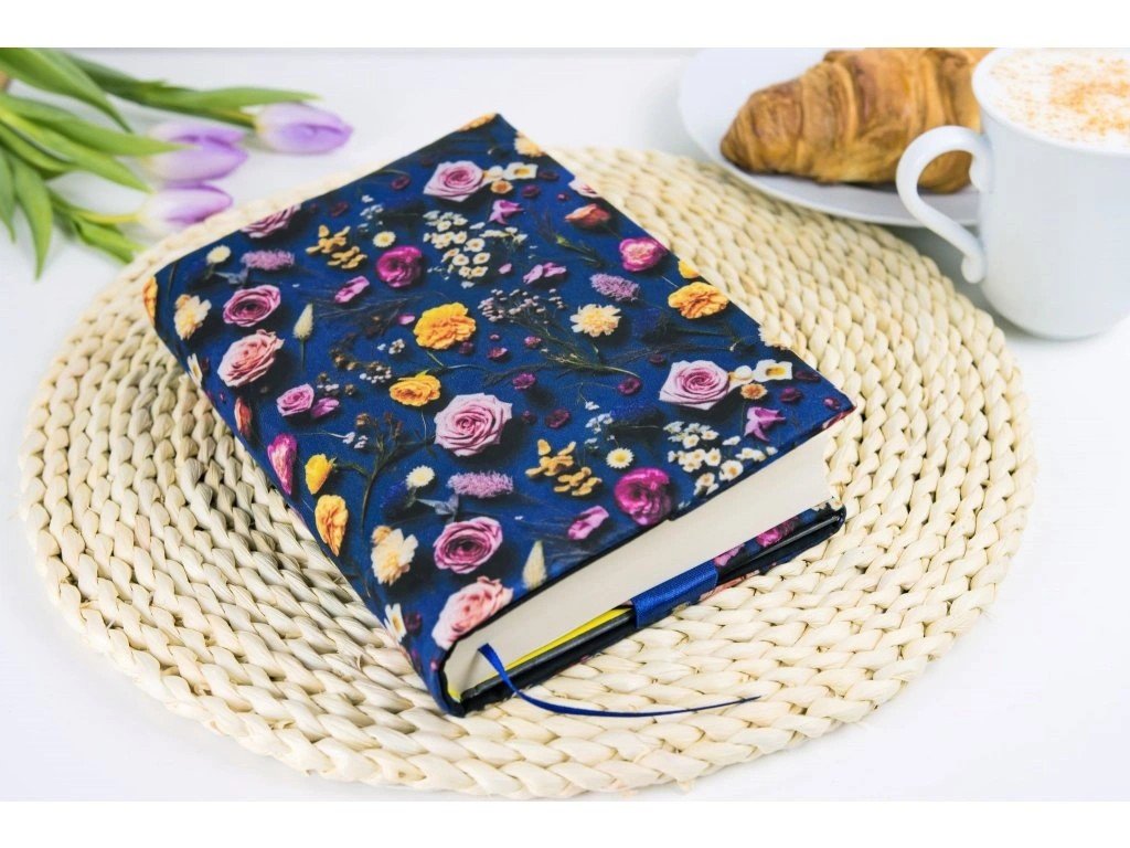 Knihobal je pevně vyztužený pro udržení tvaru a je vybaven praktickou saténovou gumou pro snadné přichycení obalu ke knize.