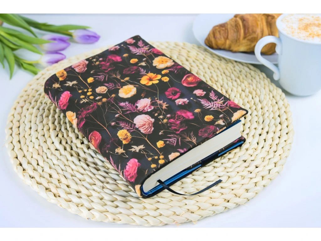 Knihobal je opatřen praktickou saténovou gumou, která zajistí dokonalé přichycení zadní klopy ke knize. Všitá záložka je samozřejmostí.