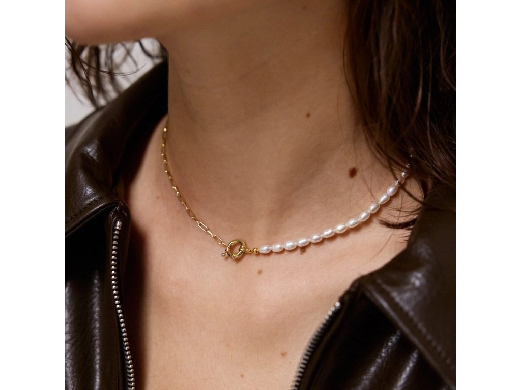 Říční perly v kombinaci se zlatými prvky značí minimalismus a eleganci. PEARL BOYFRIEND je cool dámský náhrdelník s kapkou pánského stylu, díky výraznějším sponám, které tvoří jeho část. Noste jej ke každodennímu outfitu a rozbijte nudu. Tvar i odstín každé perly se může lišit.