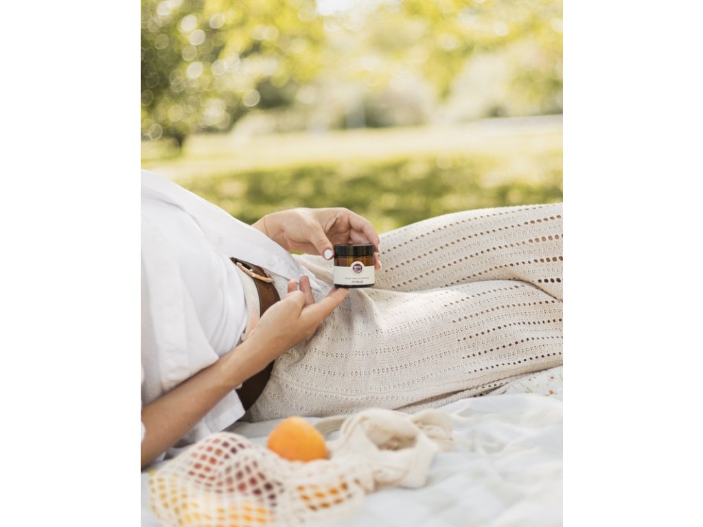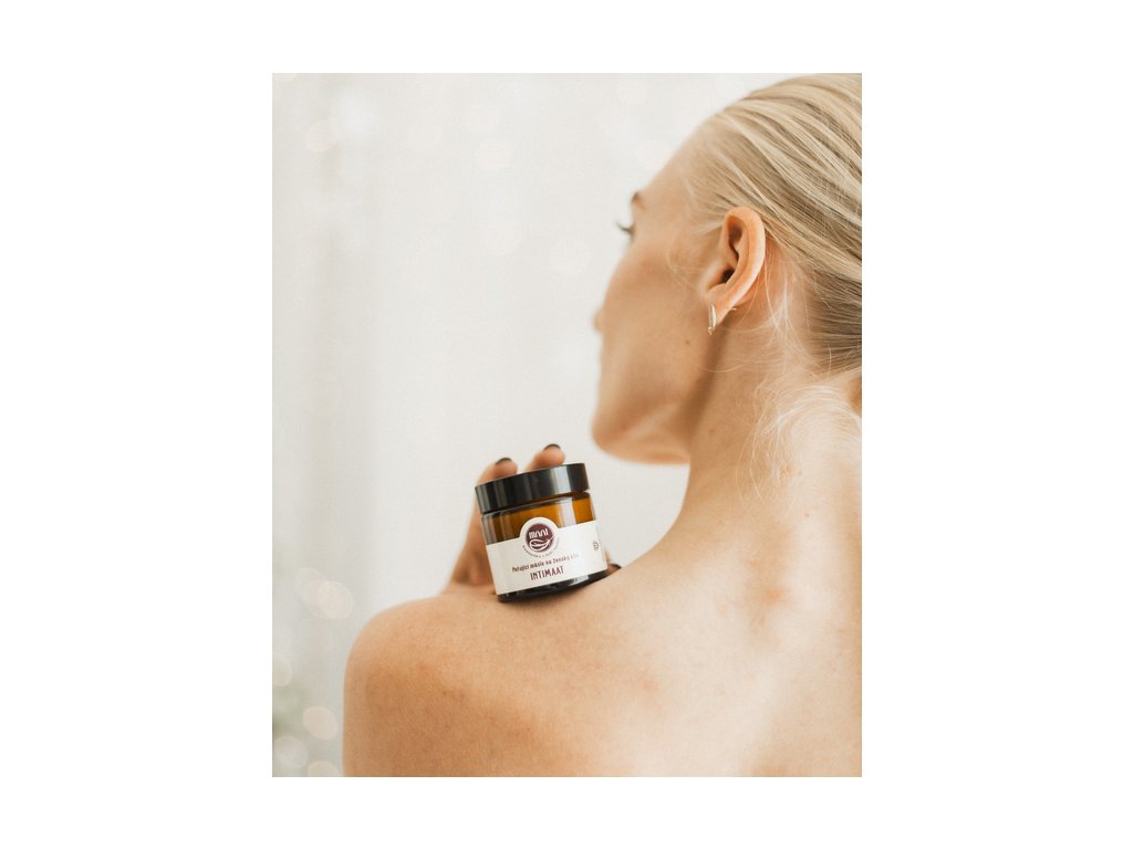 Bambucké a kakaové máslo, měsíčkový a kokosový olej dokonale pečují a hýčkají citlivou a jemnou pokožku ženského klínu.