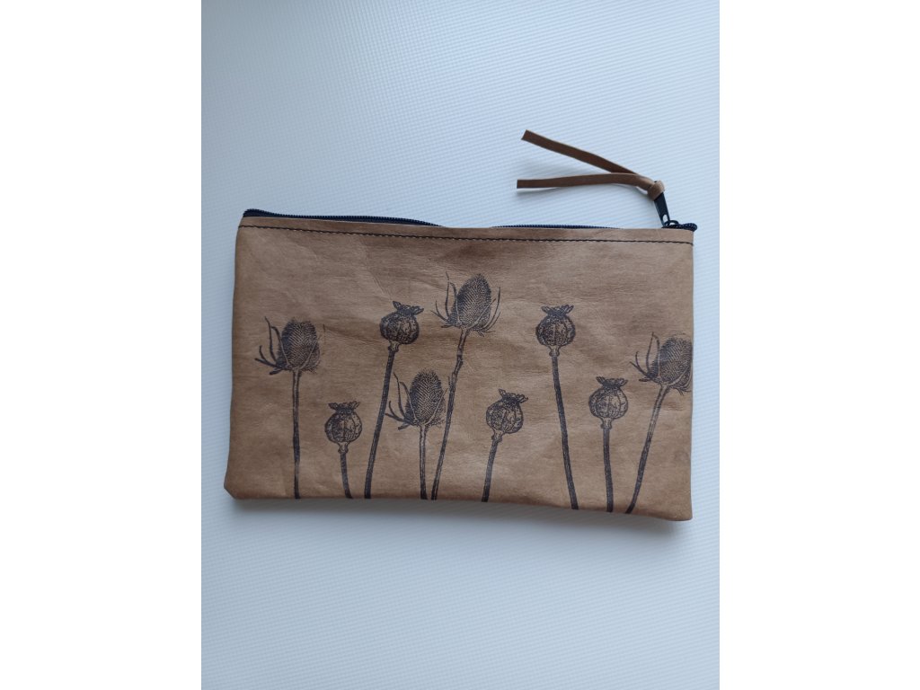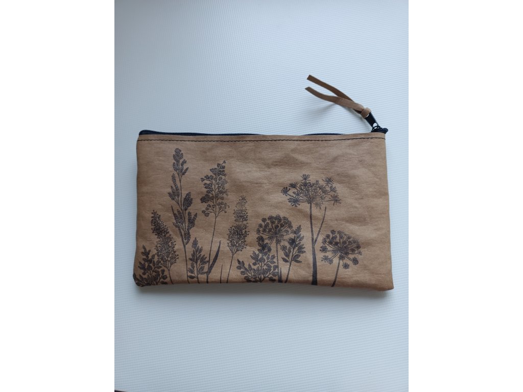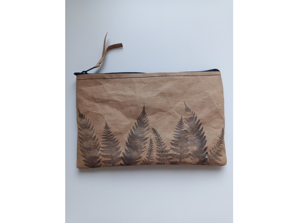 Pratelný papír, ze kterého je taštička vyrobena je trvanlivý a vodě odolný materiál, který má vlastnosti kůže, ale je veganský - vyrobený z celulózy.
