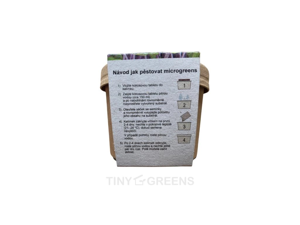 Princip pěstování microgreens je velmi jednoduchý: naplňte kelímek vodou, vložte substrátový disk do zásobníku a zalijte pitnou vodou. Poté rozprostřete semena na povrch substrátu a na několik dní umístěte víko, aby semena naklíčila současně. Poté lze víko sejmout a vaše první microgreens budou připraveny ke sklizni během několika dnů.