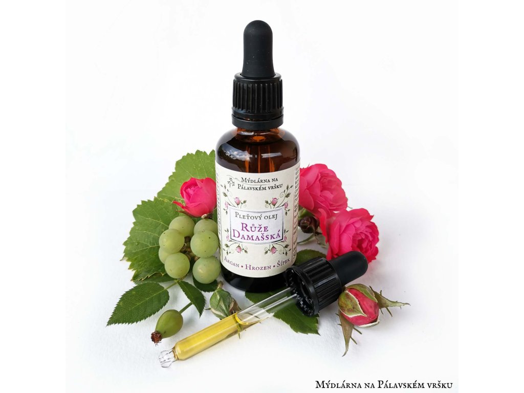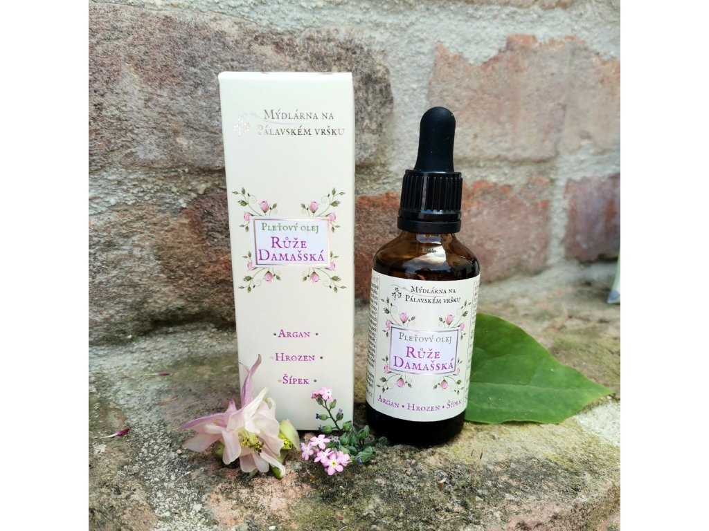 INGREDIENTS (INCI): Vitis Vinifera Seed Oil (hroznový olej, Argania Spinosa Kernel Oil (BIO EXTRA Arganový olej LZS), Rosa Canina Seed Extract (Extra Bio šípkový olej CO2), Rosa Damascena Flower Oil ( 100% esenciální olej Růže damašská), Citronellol*, Geraniol*, Linalool*, Farnesol*, Eugenol*, Citral*.