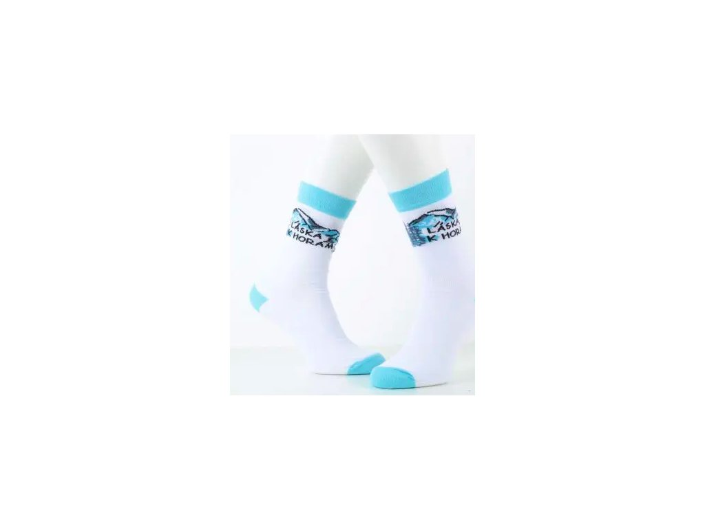 Bavlněné ponožky s motivem hor a textem LÁSKA K HORÁM.