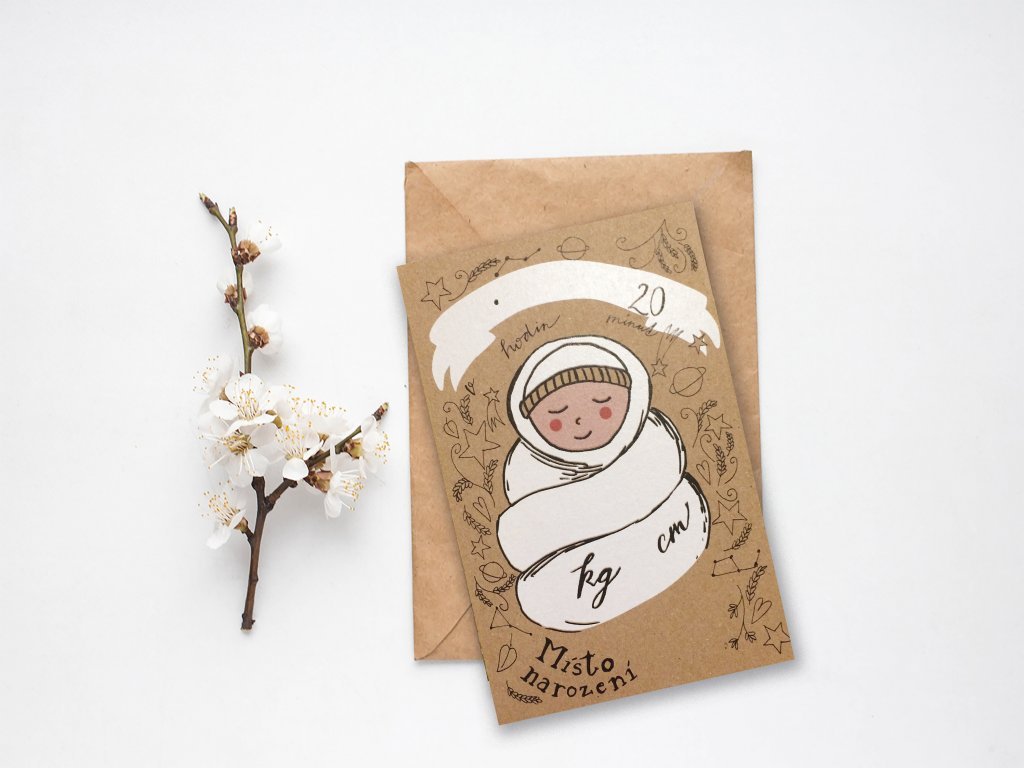 Vyplňovací kartička, kam můžete napsat veškeré informace o miminku a poslat jako upomínku babičkám a dědečkům a každému, koho novinka potěšila.