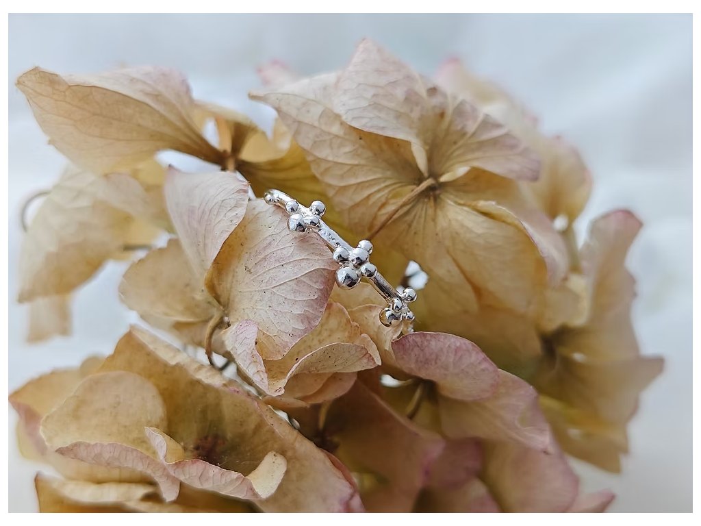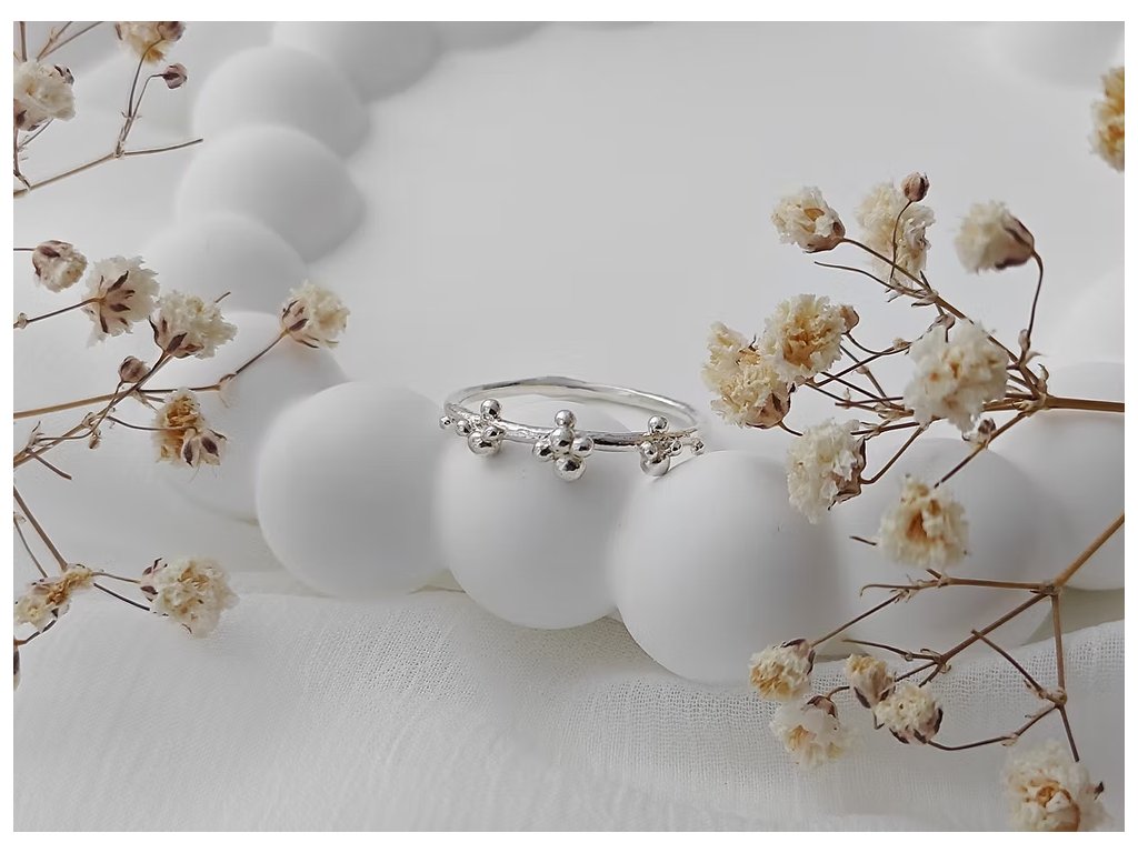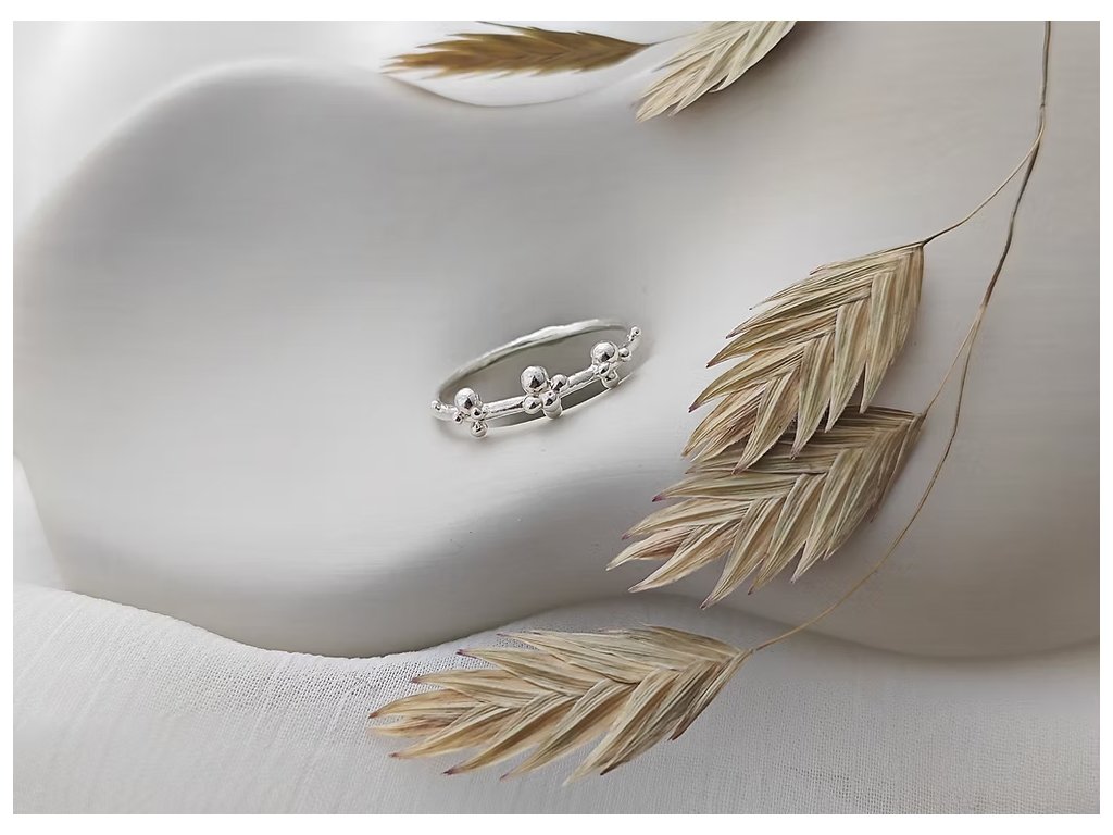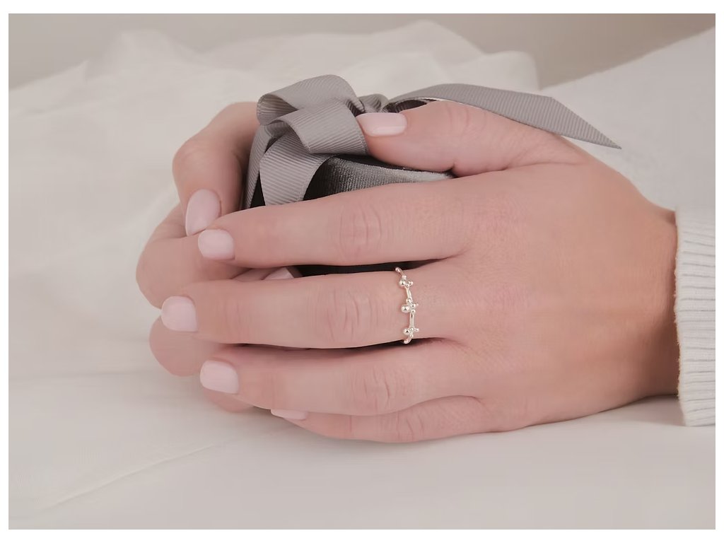 Tento stříbrný minimalistický prsten v oblíbeném cluster stylu v sobě spojuje jednoduchost a moderní eleganci.