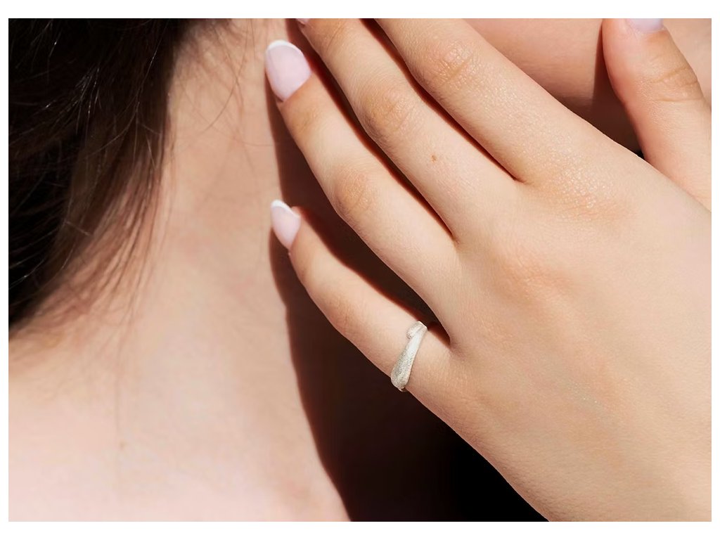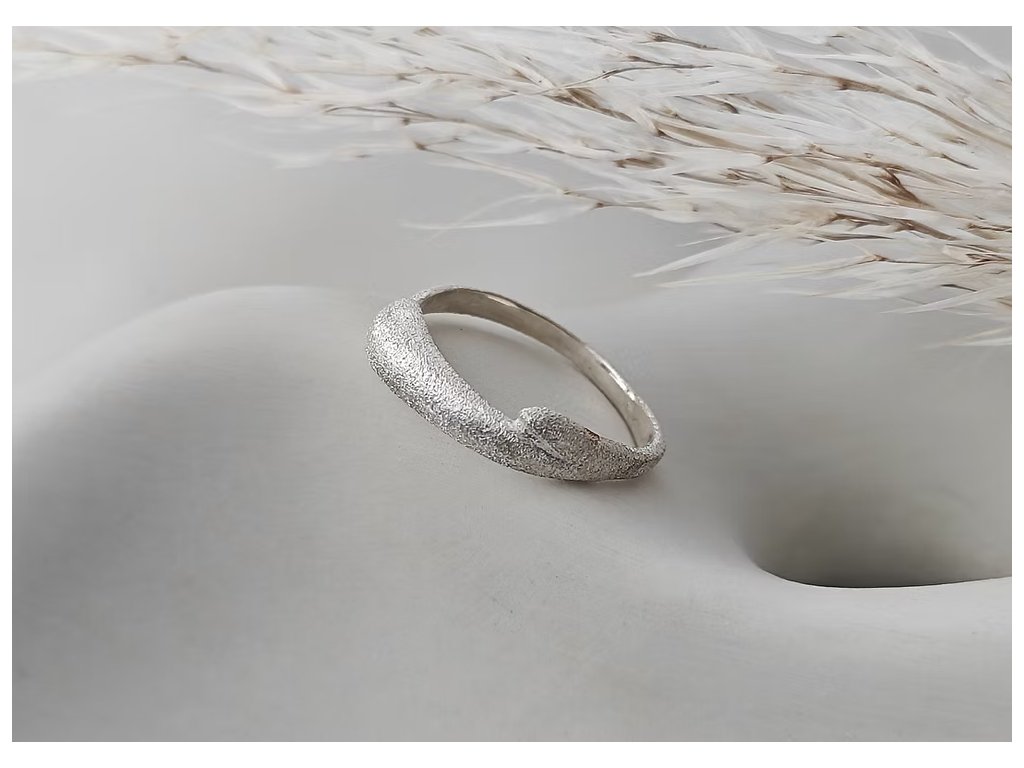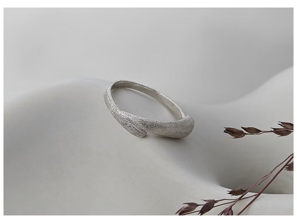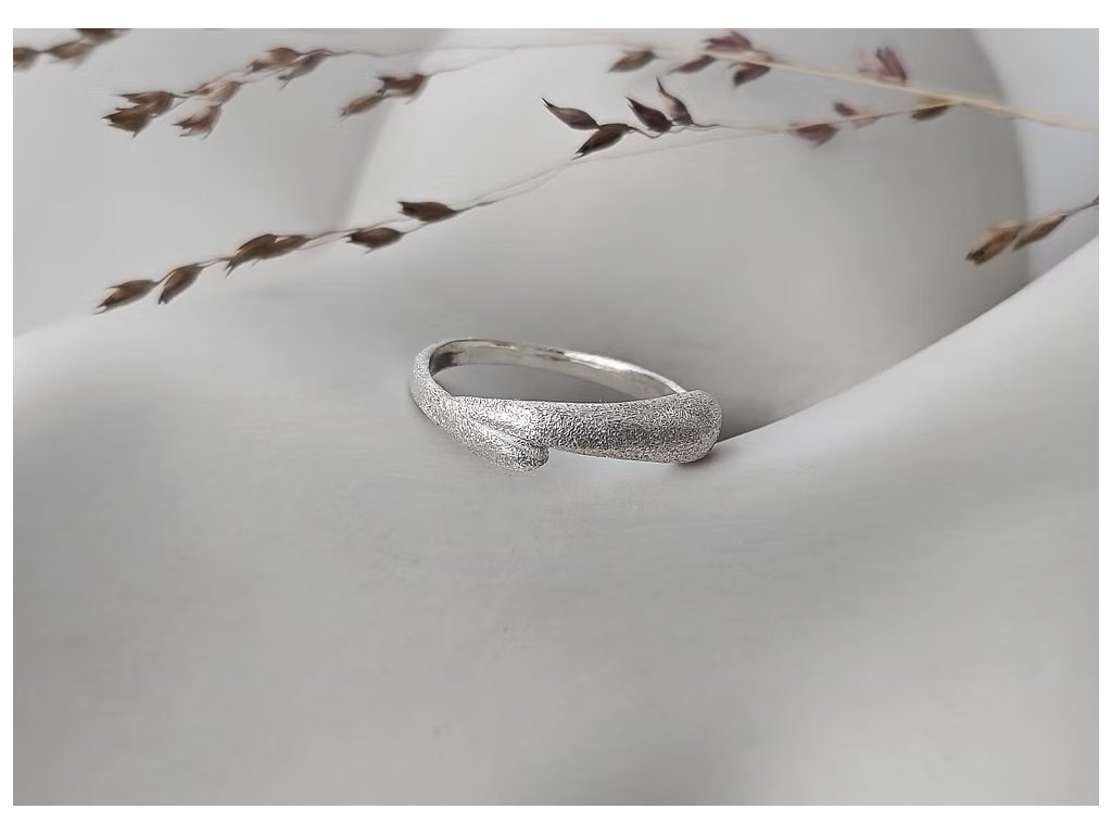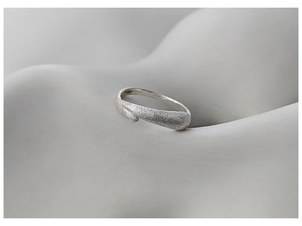 Prsten inspirovaný pohybem mořské vlny zachycený ve stříbře.