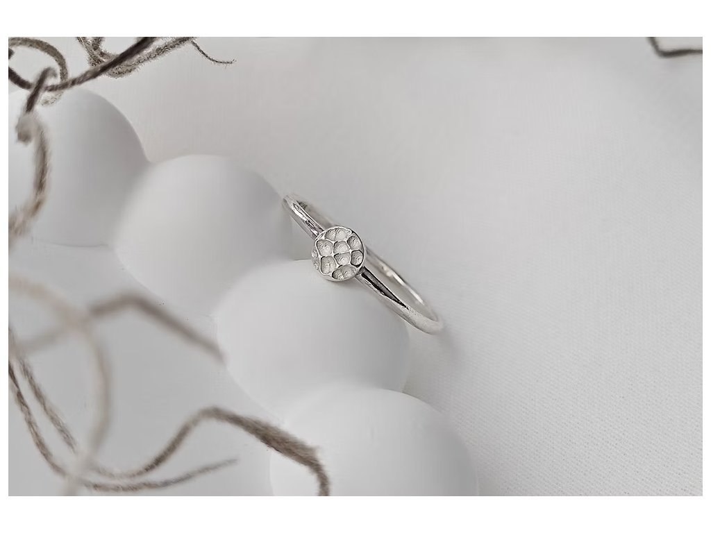 Minimalistický design tohoto prstenu se inspiroval povrchem Měsíce, kde každý jeho detail připomíná drobné nárazy meteoritů, které utvářejí zcela jedinečné formy.