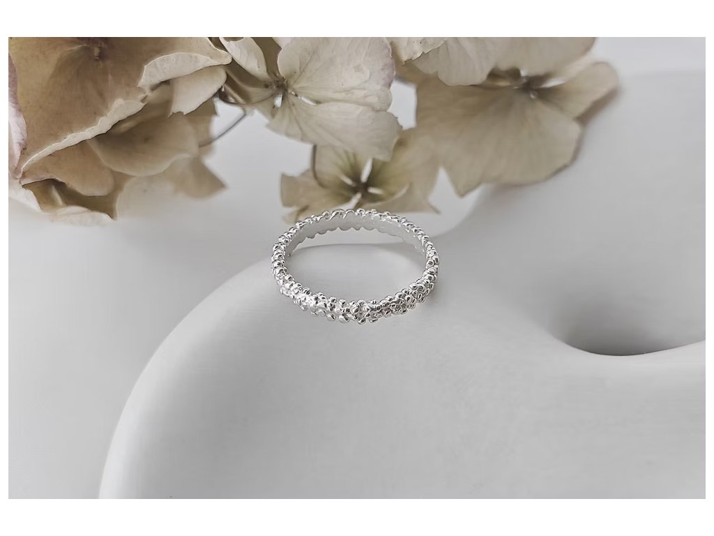 Posetý drobnými bublinkami vytváří jemně strukturovaný povrch, který zachycuje světlo z každého úhlu. Každá kulička je jako připomínka malých radostí, které dohromady tvoří celek – nepravidelný, přirozený a naprosto jedinečný.