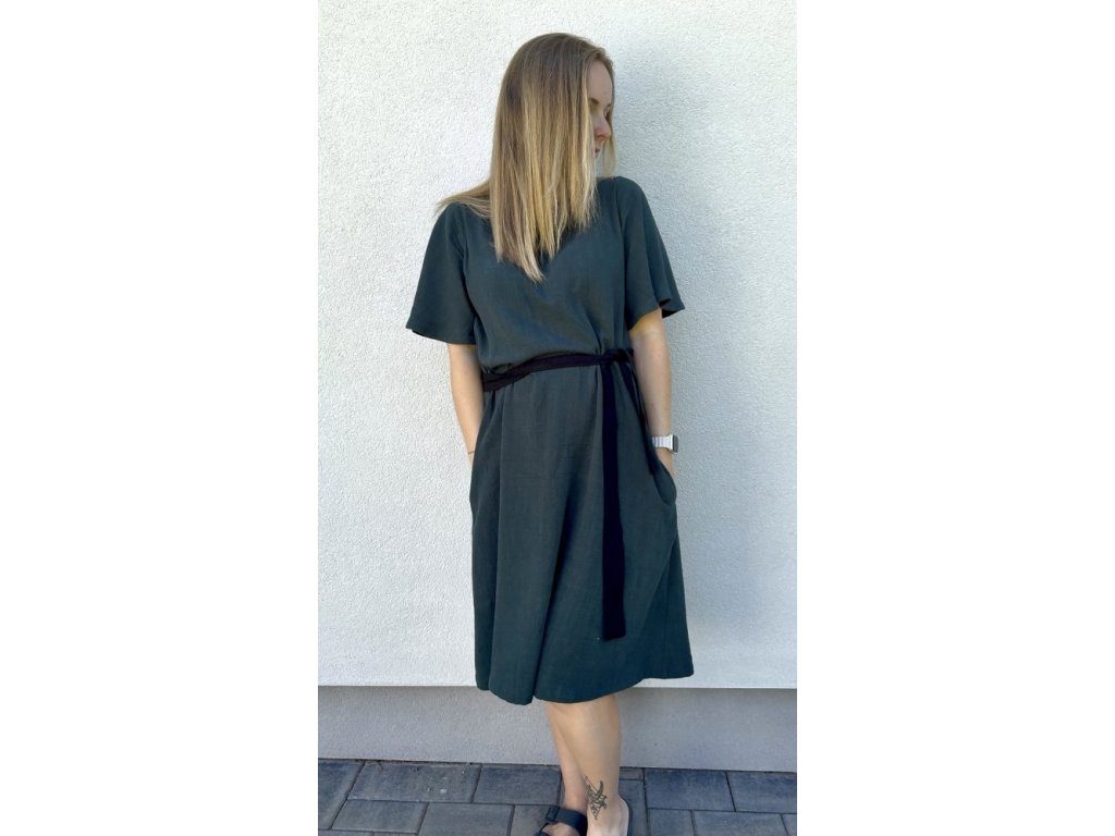 Šaty z lněné viskózy s páskem