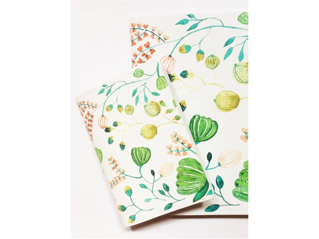 Zmenšenina většího sešitu s prazvláštními rostlinami jako ze zámeckého skleníku, do které se píše jedna báseň! Tu tam každopádně také můžete napsat.