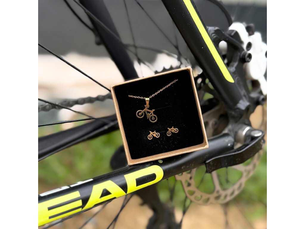 – dámský ocelový náhrdelník s destičkou ve tvaru KOLA a náušnice v stejným dizajnu