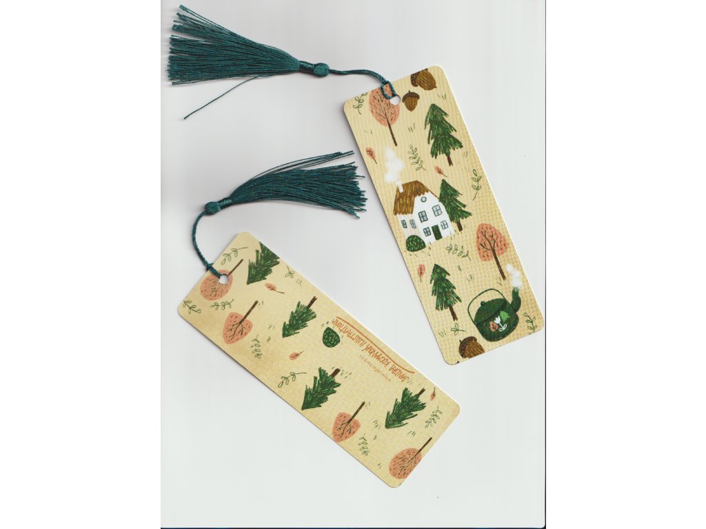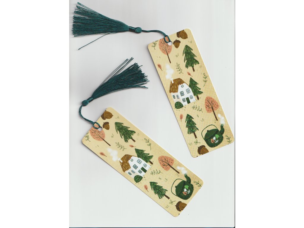 Milá záložka se střapcem a malůvkou podzimního lesíka.